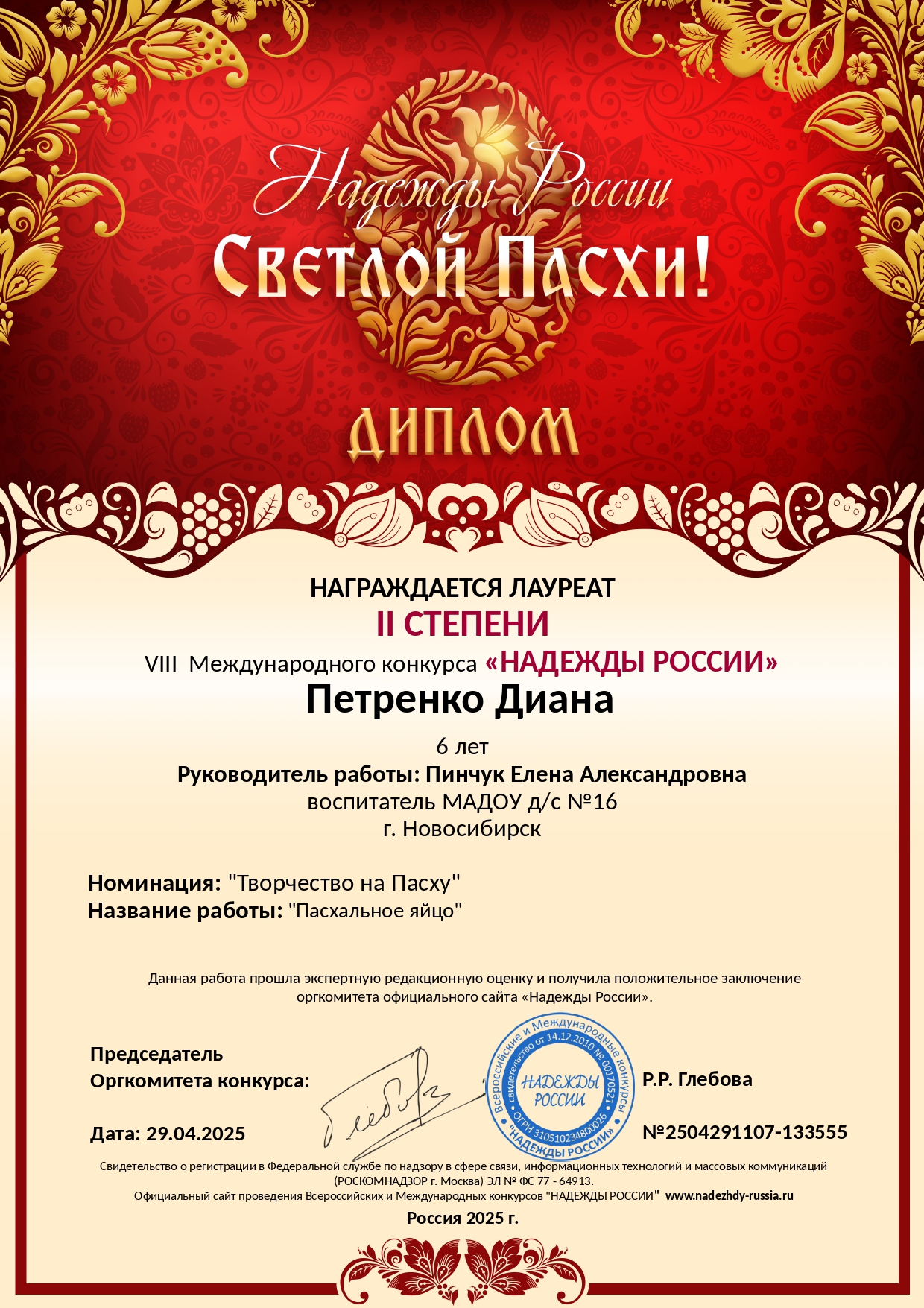 Международный творческий конкурс, в номинации «Пасхальное яйцо»