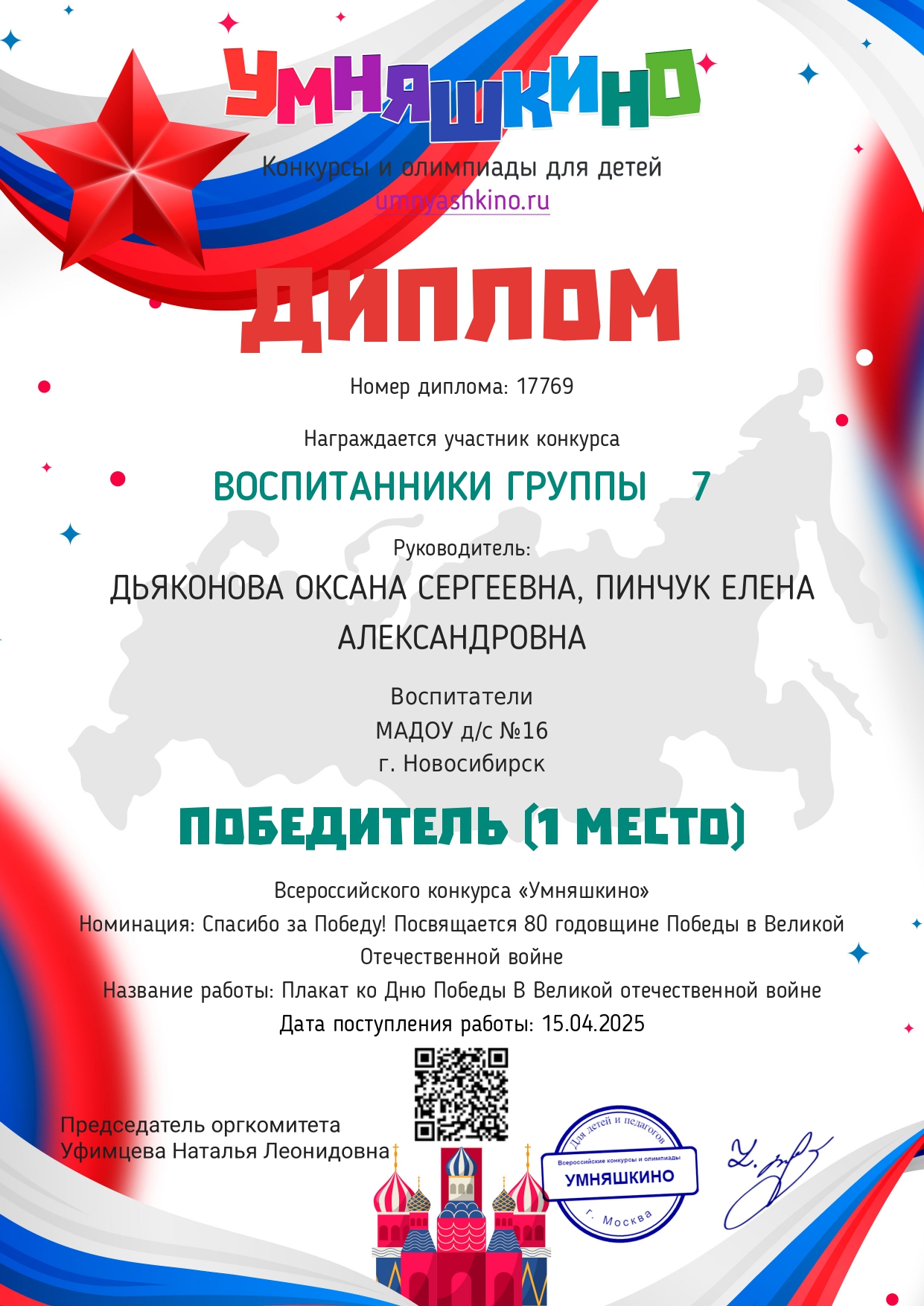 Всероссийский конкурс «Умняшкино» в номинации «Плакат ко Дню Победы в Великой отечественной войне»