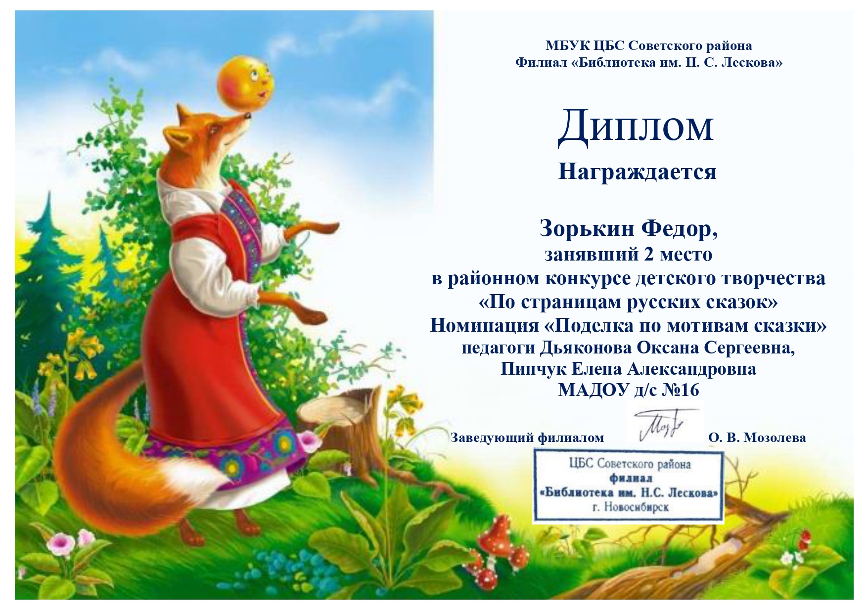 Районный конкурс детского творчества «По страницам русских сказок», в номинации «Поделка по мотивам сказки»
