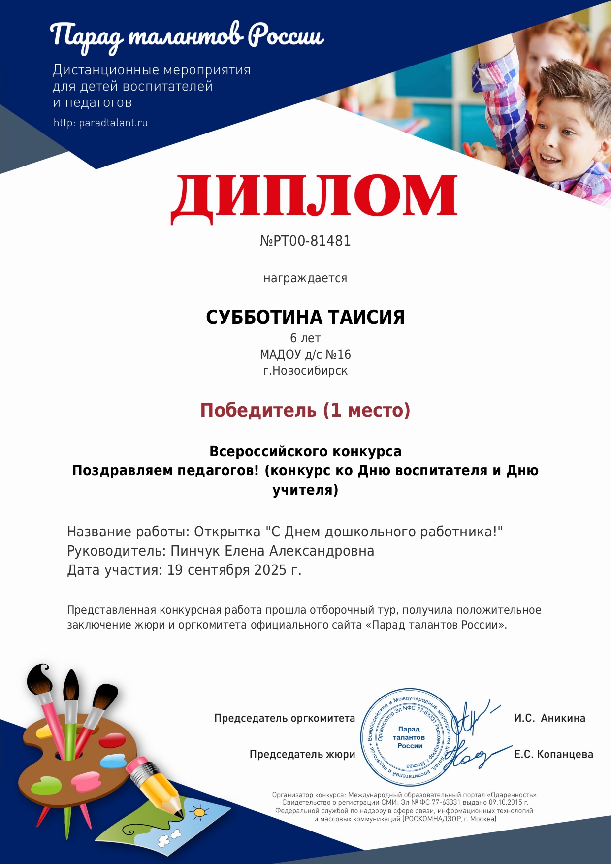 Международный конкурс "Надежды России" "Для мамочки с любовью"