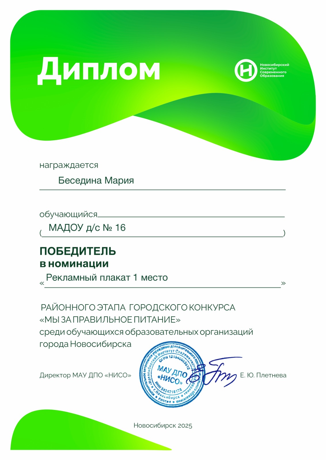 Городской конкурс районного этапа «Мы за правильное питание», в номинации «Рекламный плакат»
