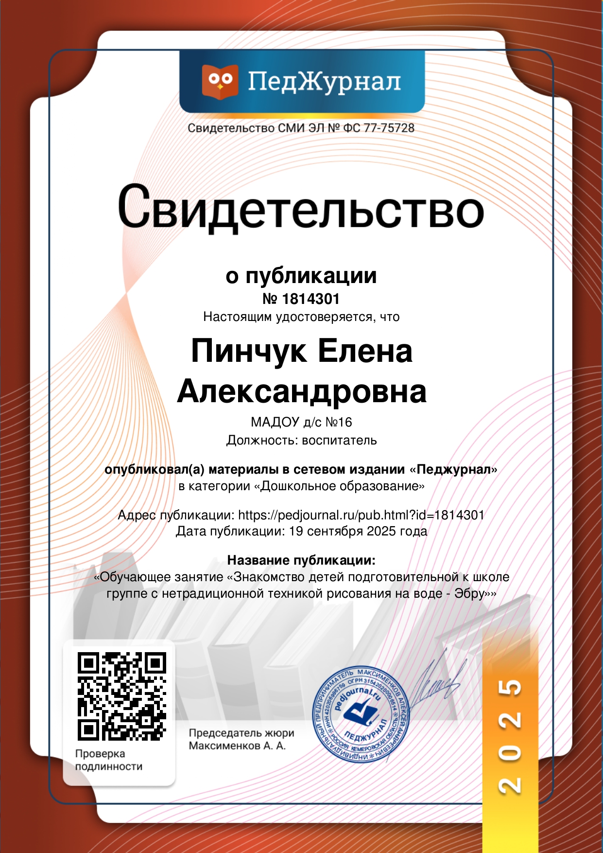 Обучающее занятие "Знакомство детей подготовительной к школе группы с нетрадиционной техникой рисования на воде - "Эбру" " // 2025.